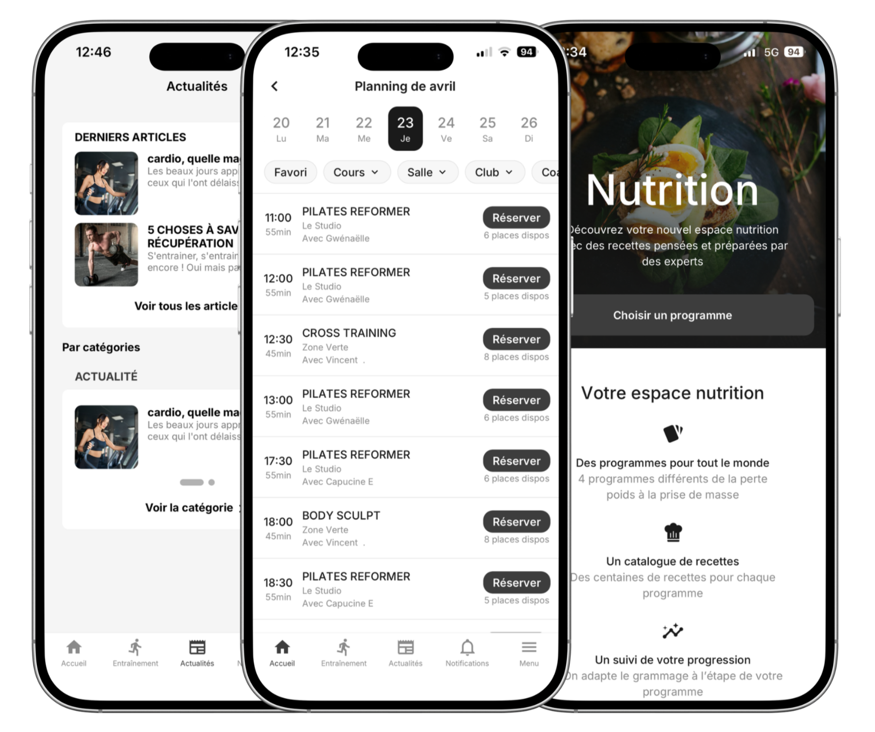 ✔ Réserver vos cours en ligne